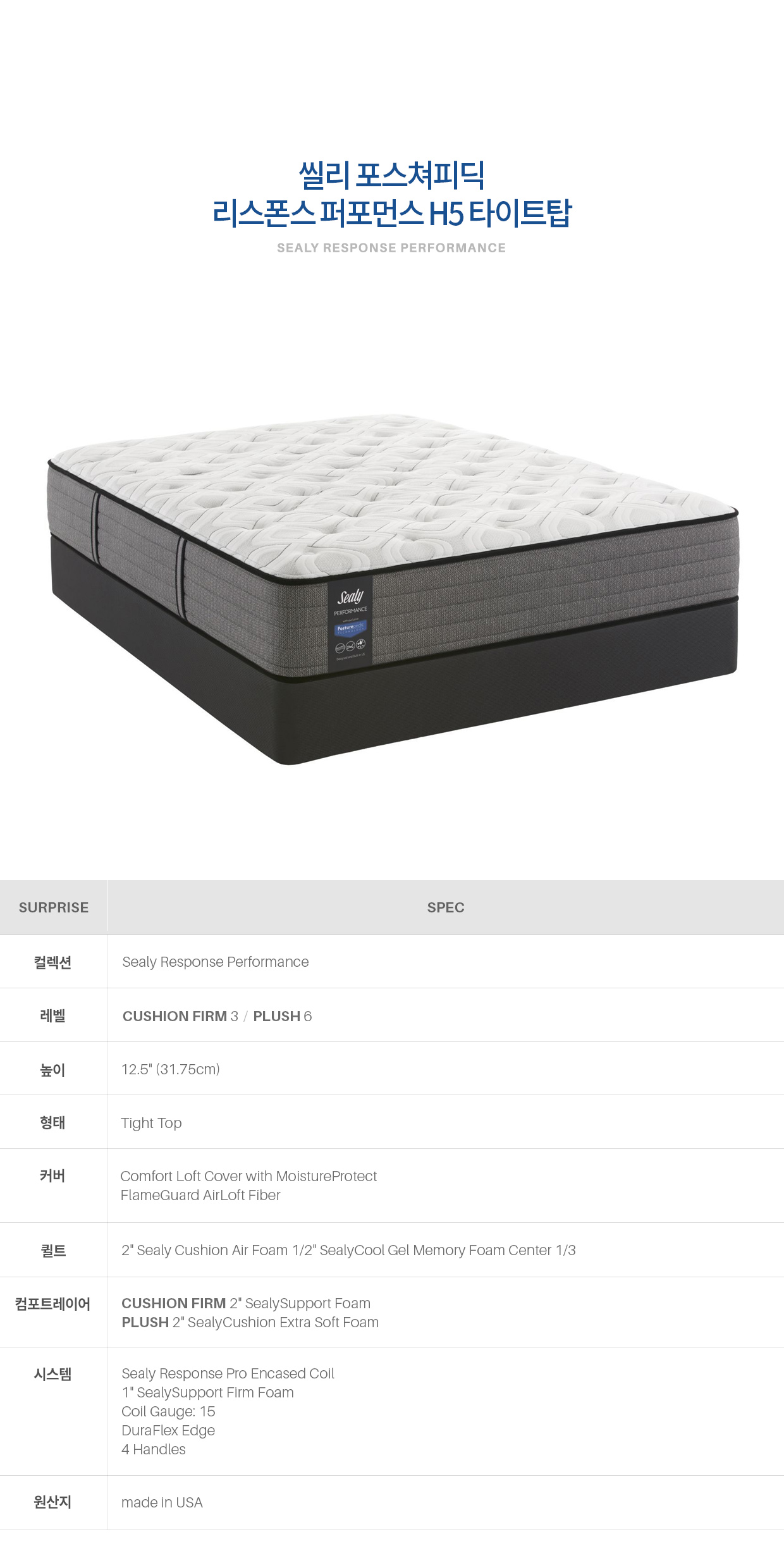 씰리 리스폰스 퍼포먼스 H5 쿠션 펌 타이트탑