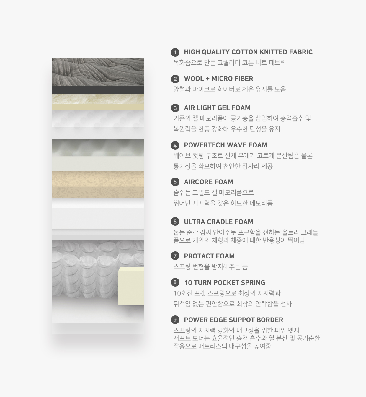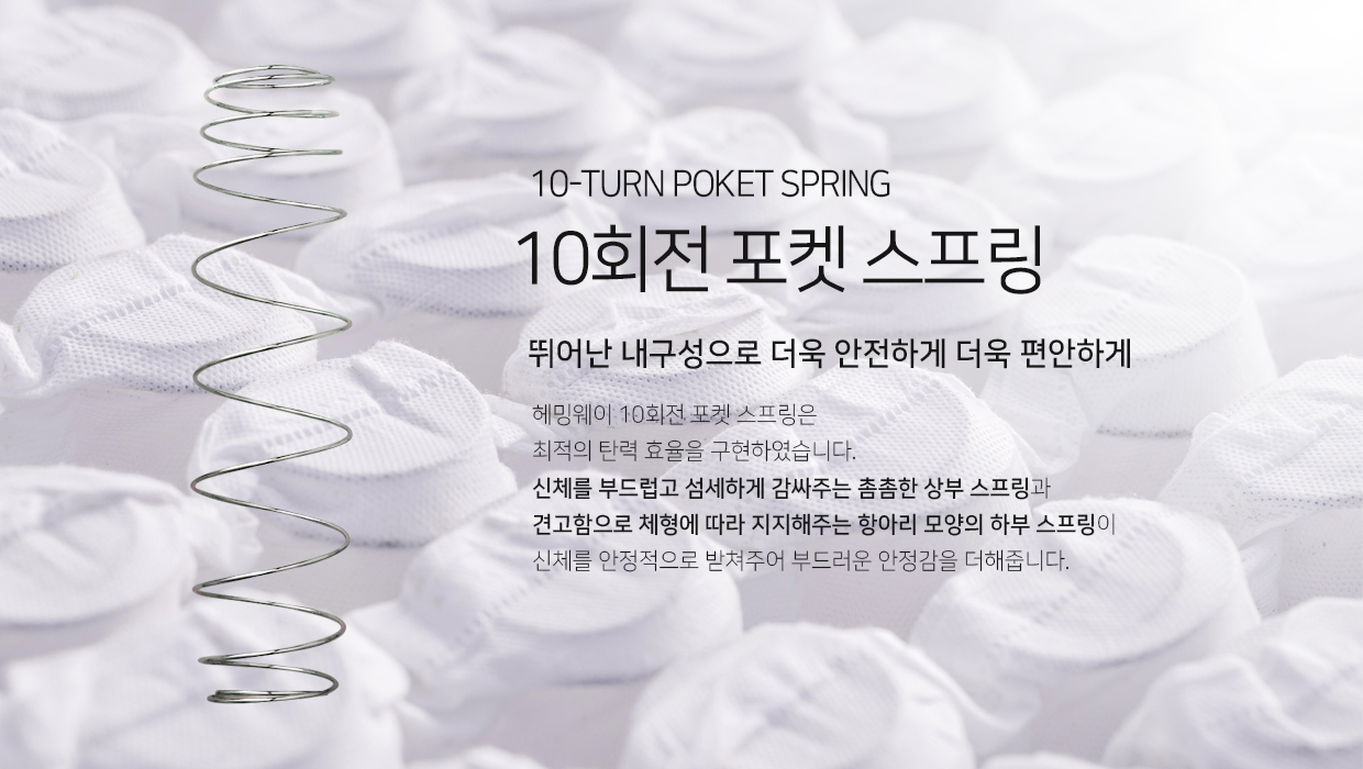최고급 10회전 포켓 스프링으로 최상의 안락함을 선사합니다.